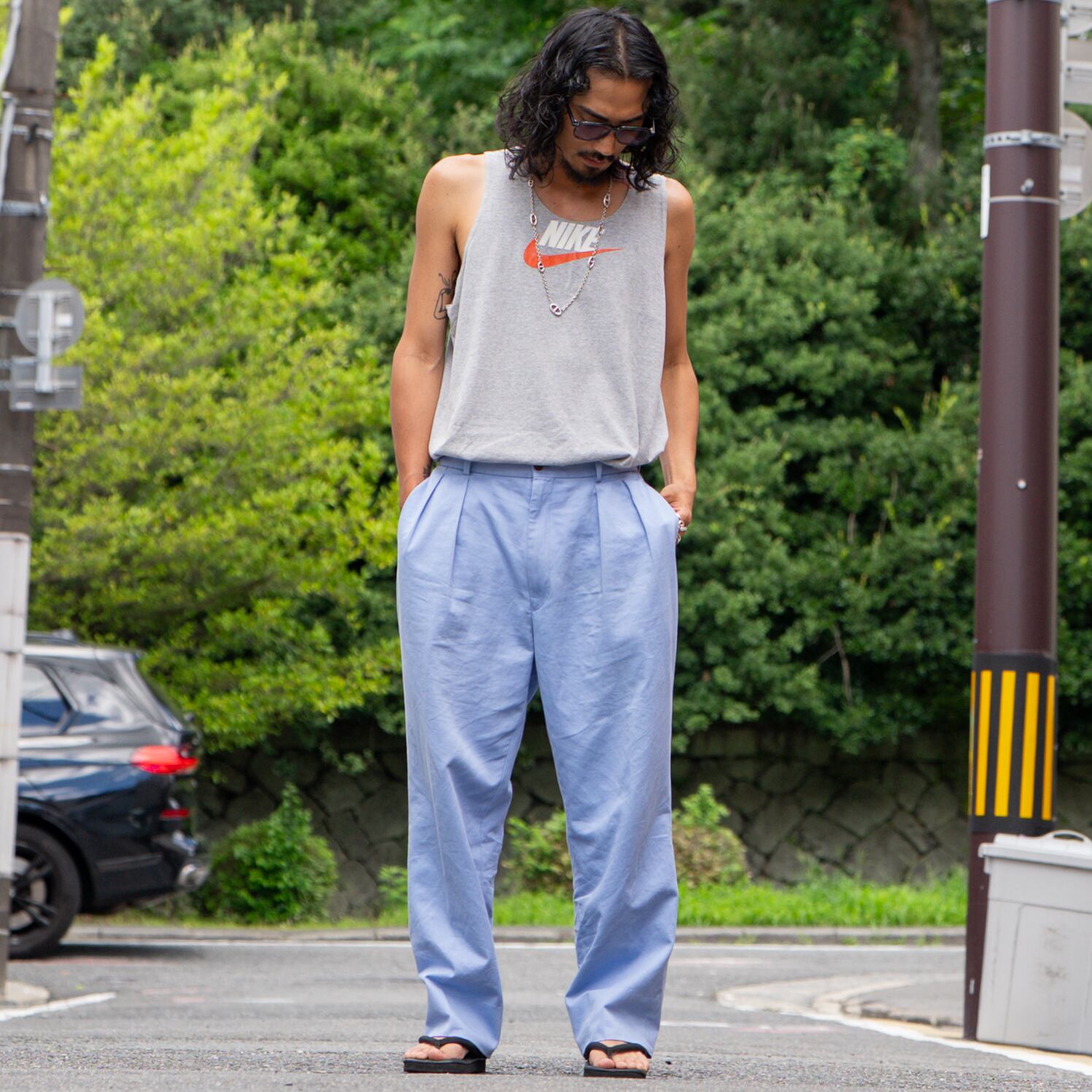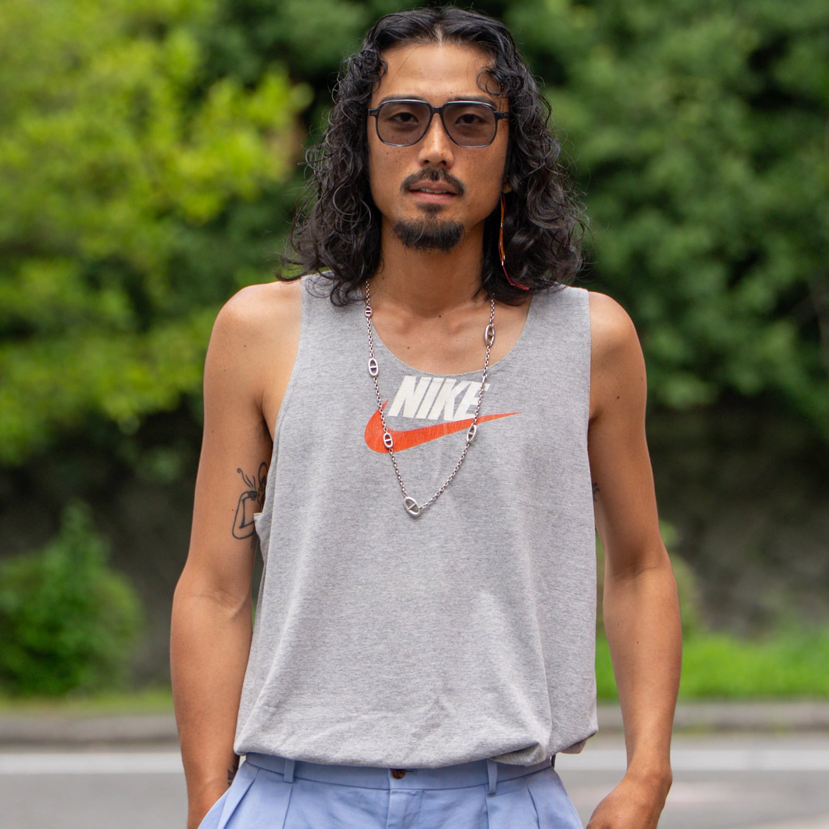 NIKEのTシャツを再構築したボックスシルエットのリメイクタンクトップ。