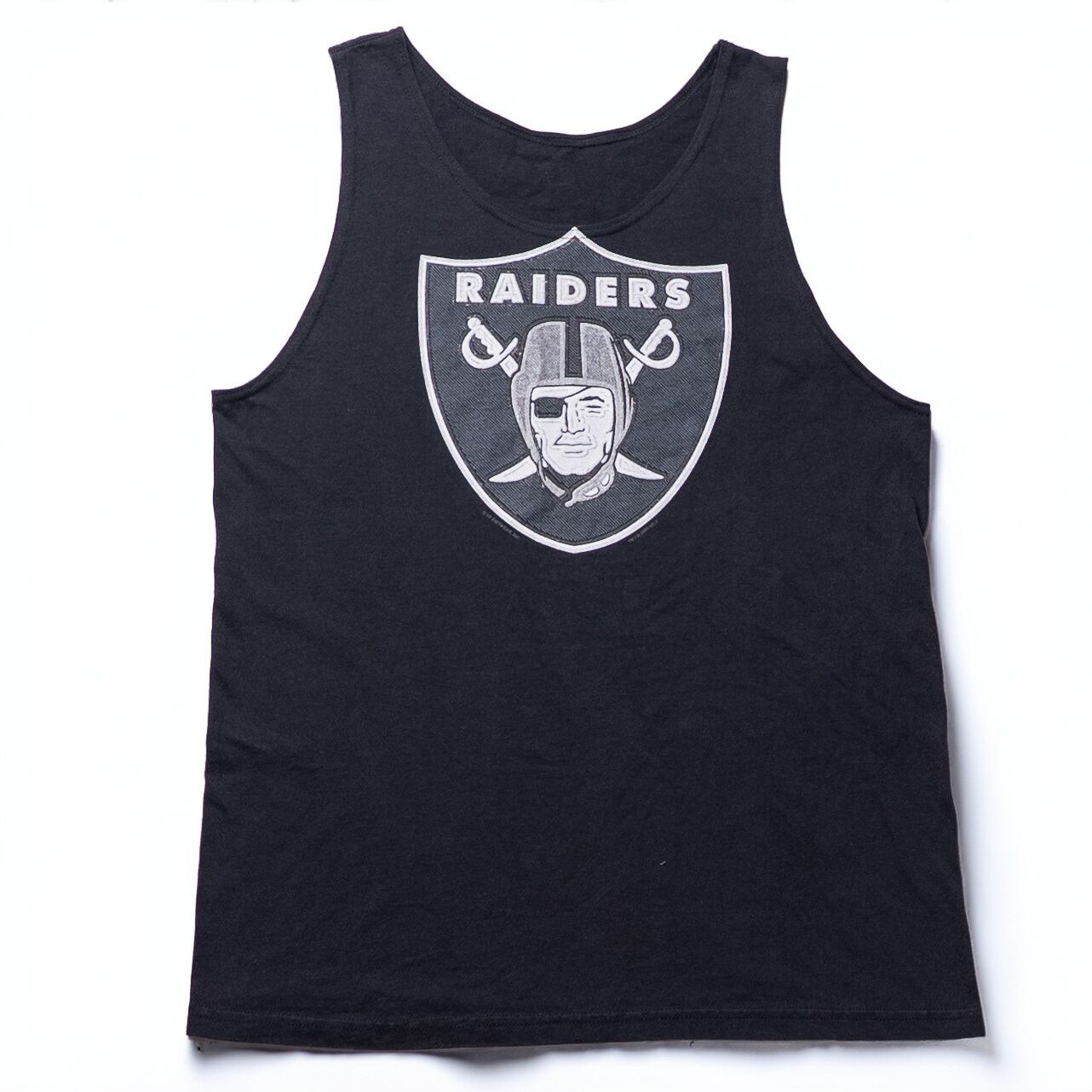 NFL・ラスベガスレイダースのロゴを大胆にあしらったリメイクタンクトップ。