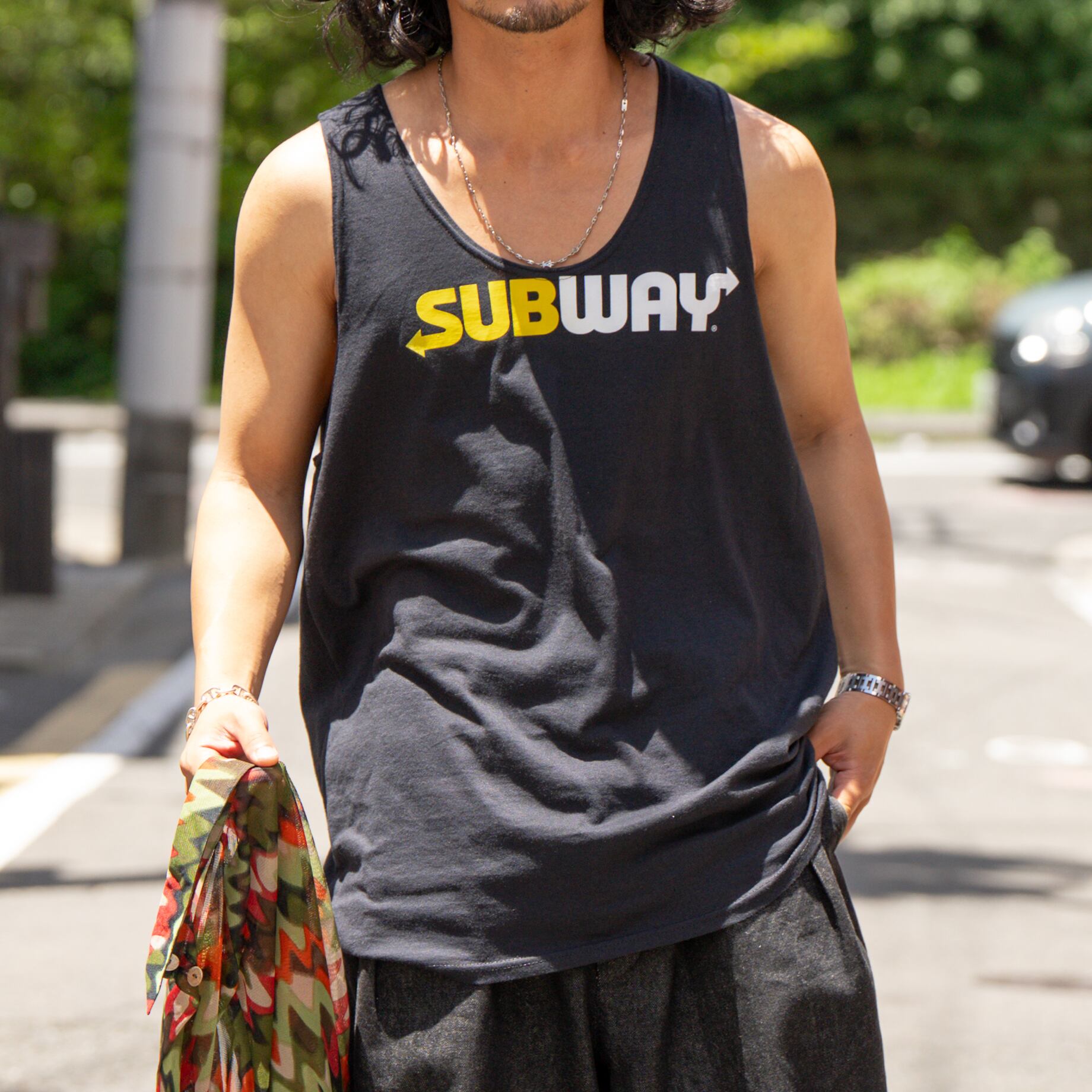 ファストフードチェーン「SUBWAY」のロゴをフロントに落とし込んだリメイクタンクトップ。