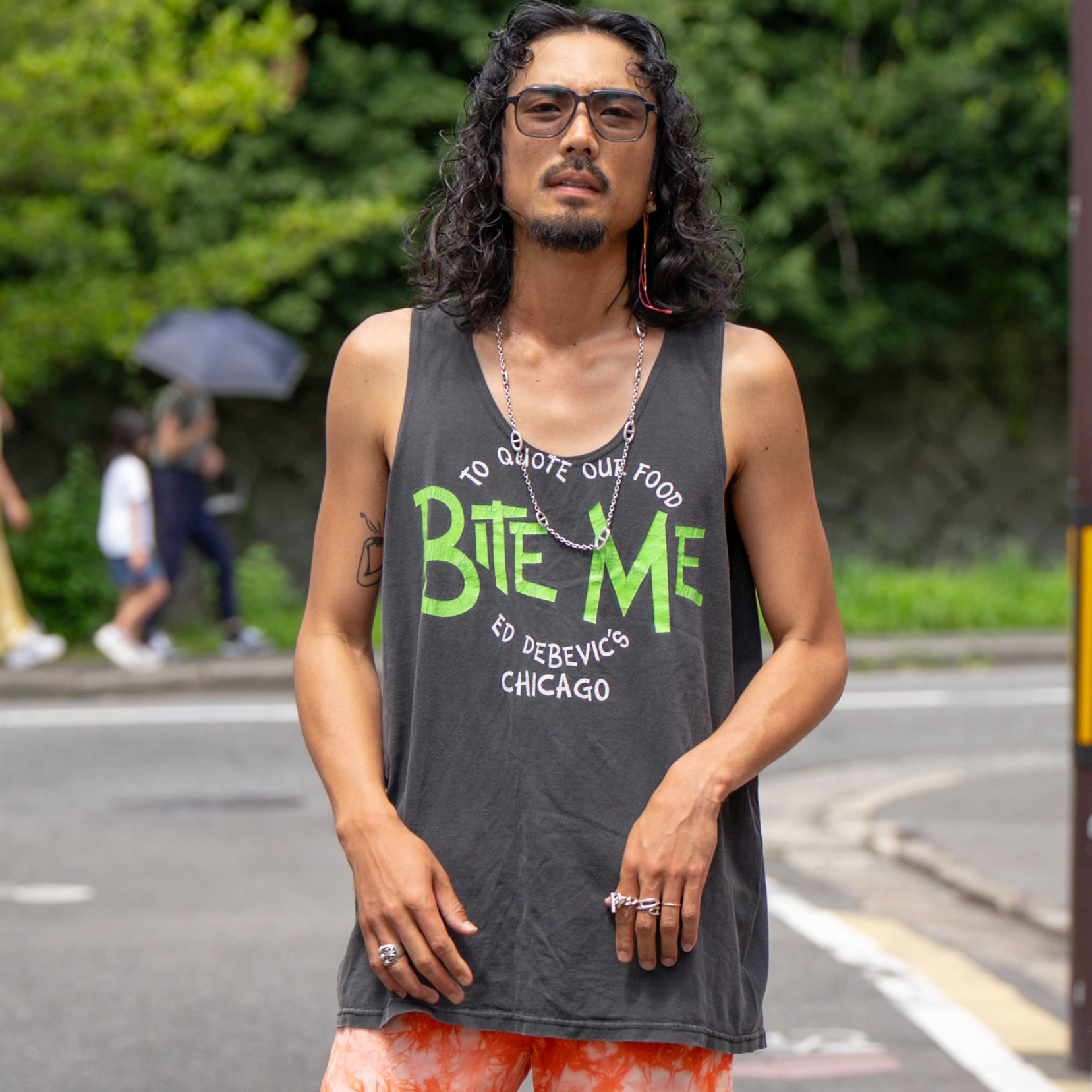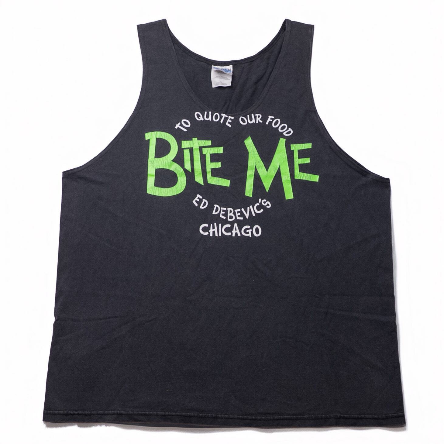 フロントに大胆にプリントされた“BITE ME”の文字が目を引く、遊び心満点のリメイクタンクトップ。