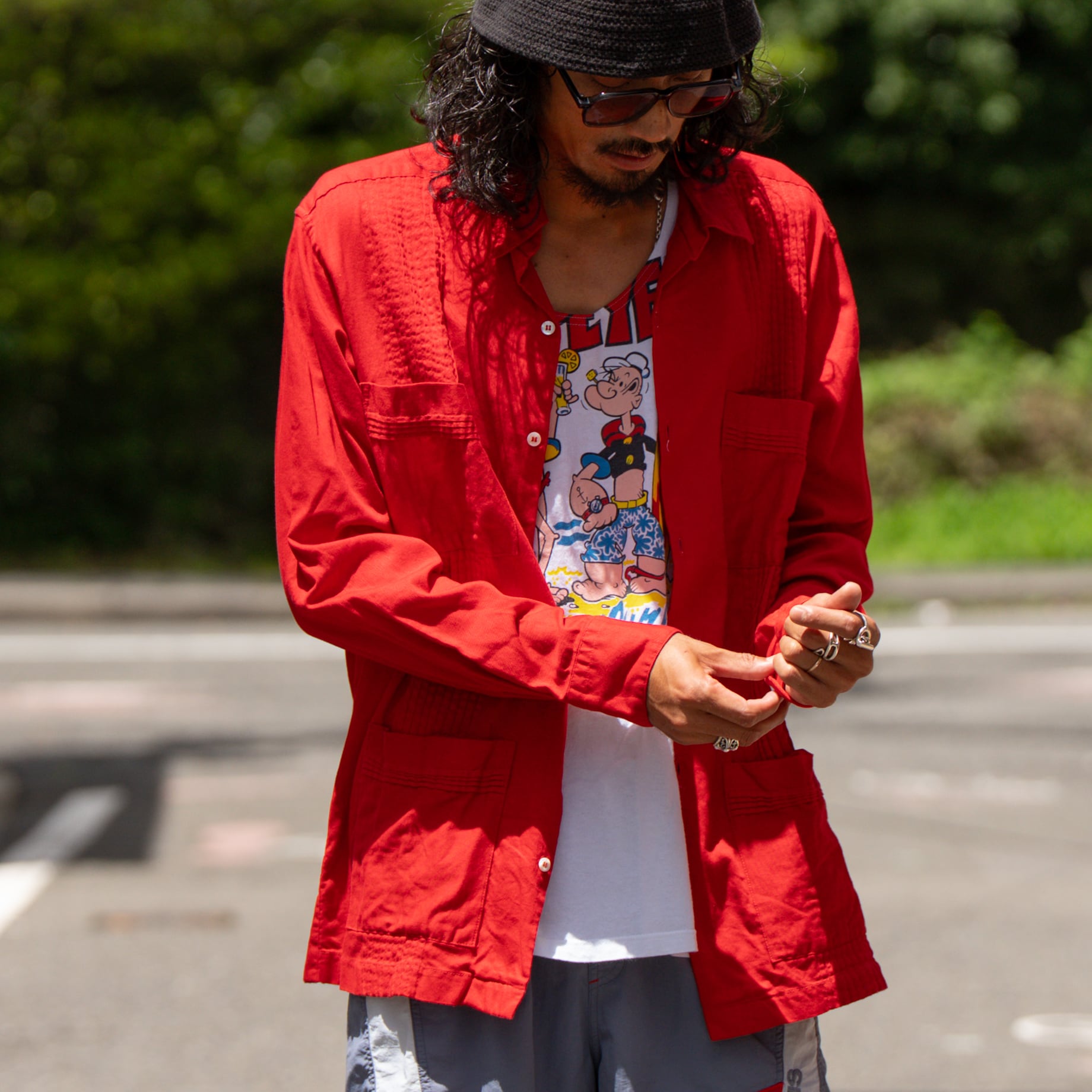 存在感抜群のレッドカラーが魅力のキューバシャツ。