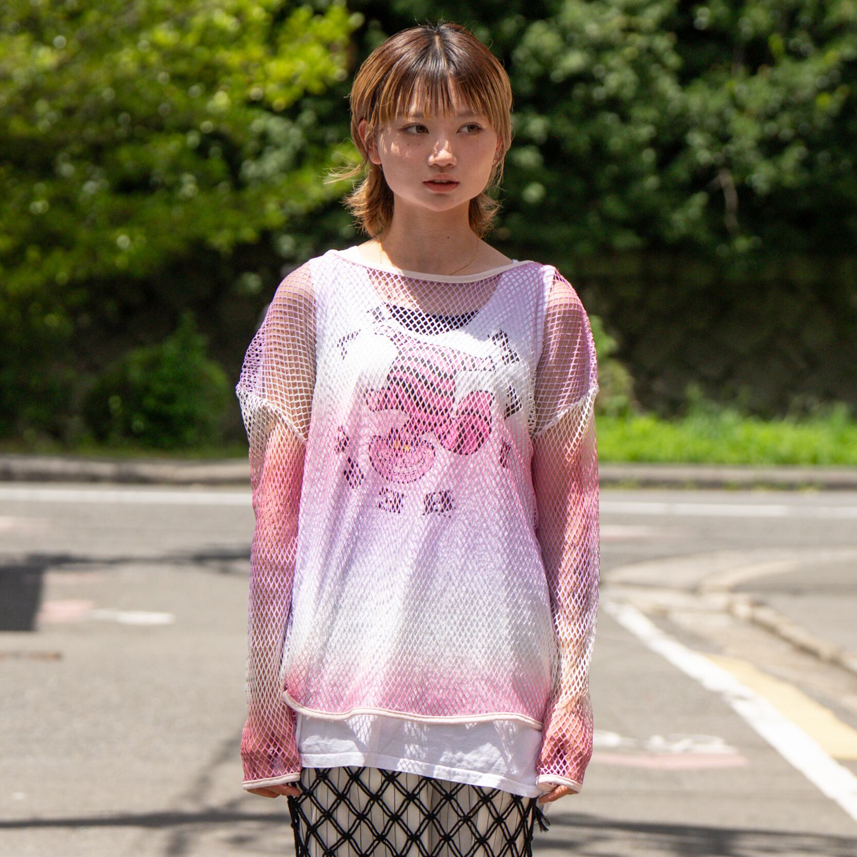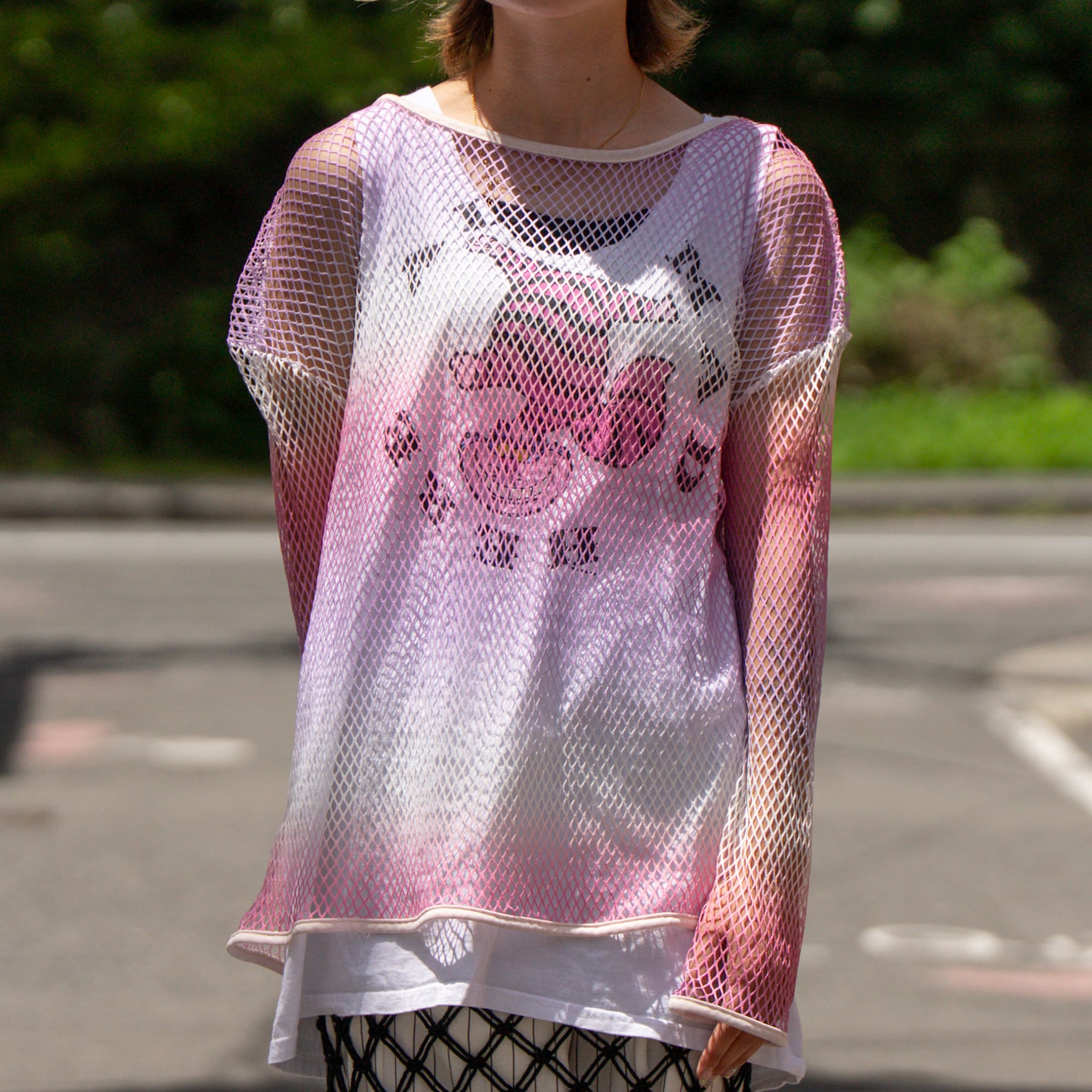 90年代らしい透け感のあるメッシュ素材に、