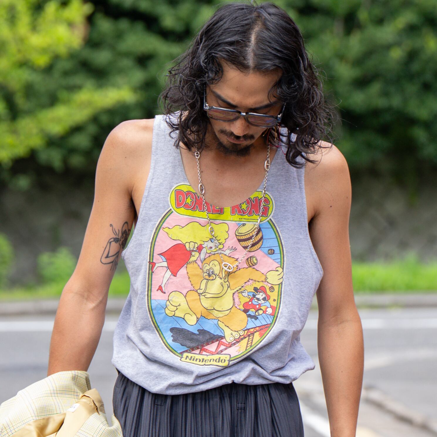 懐かしの名作ゲーム「ドンキーコング」のグラフィックを大胆に落とし込んだリメイクタンクトップ。