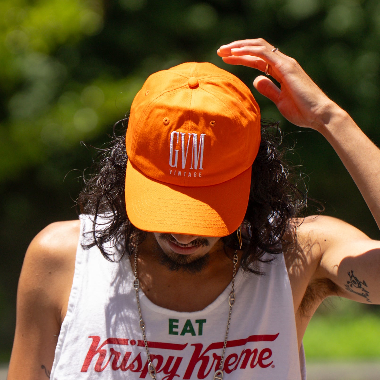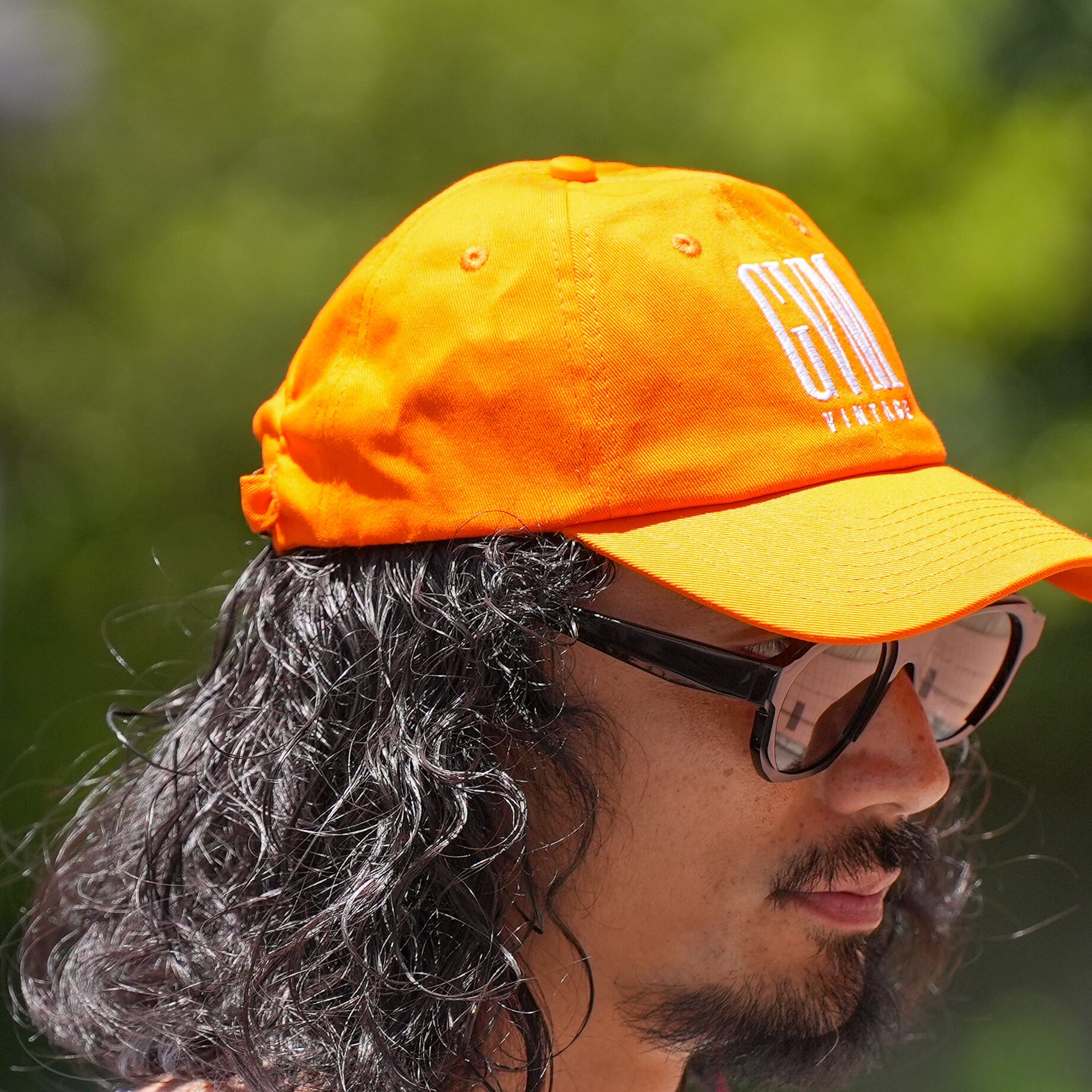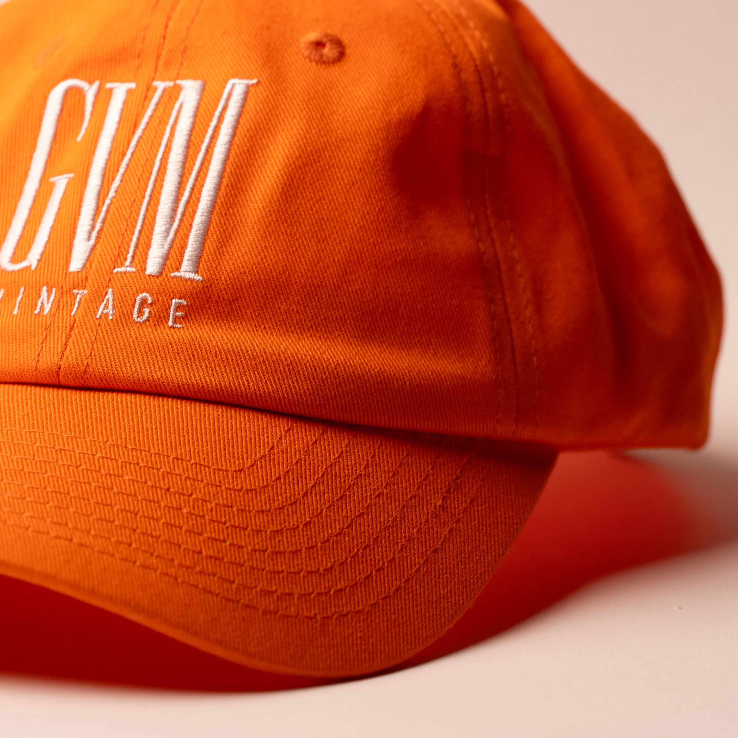 鮮やかなオレンジが夏の日差しに映える、GVM VINTAGEのオリジナルキャップ。