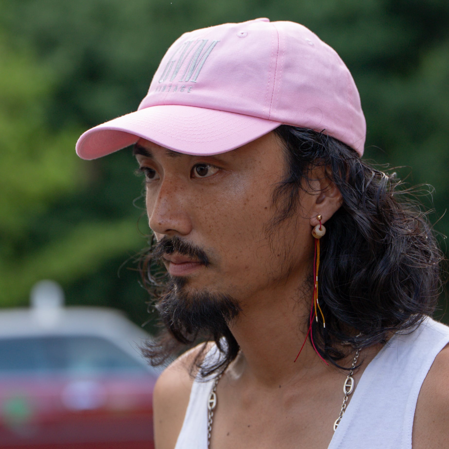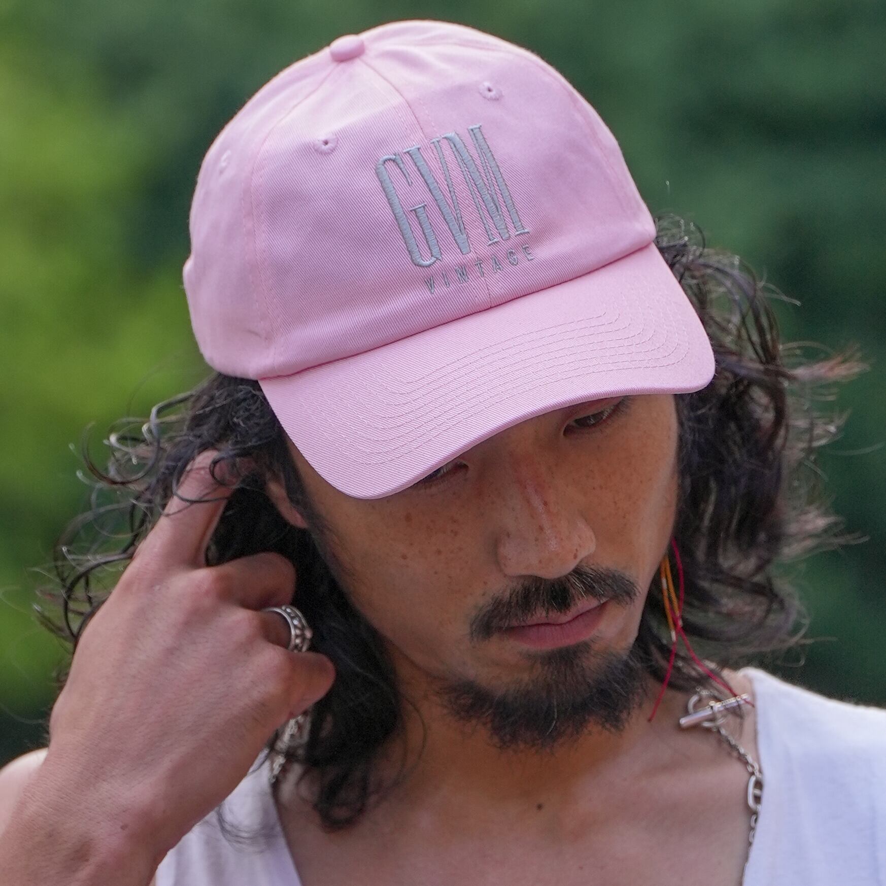 鮮やかなピンクが夏の日差しに映える、GVM VINTAGEのオリジナルキャップ。