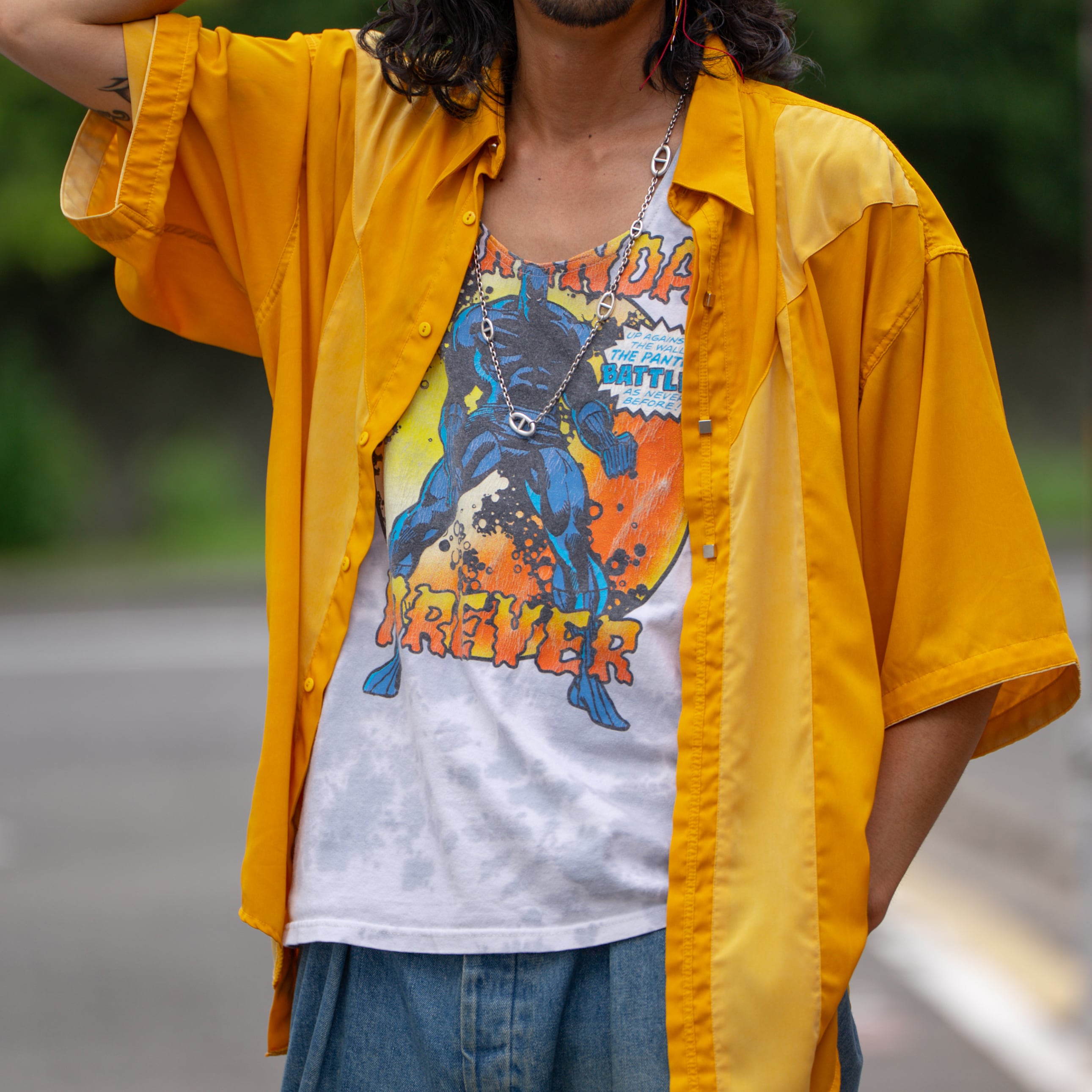 【LECHÉ / Satin Two-Tone Open Collar Shirt】XL